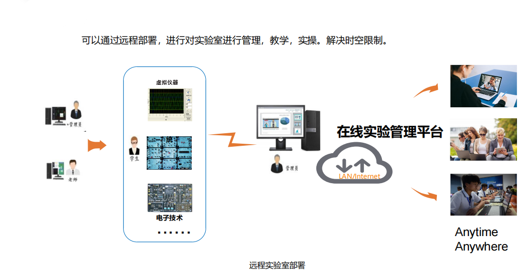 ? ? ? ? ? ? ? ? ? ? ? ? ? ? ? ? ? ? ? ? ? ? ? ? ? ? ? ? ? ? ? ? ? ? ? ? 遠(yuǎn)程在線實驗系統(tǒng)由智能網(wǎng)絡(luò)主機(jī)、本地實驗業(yè)務(wù)板、遠(yuǎn)程實驗業(yè)務(wù)板、在線實驗管理軟件、平臺服務(wù)器、學(xué)生電腦等組成。